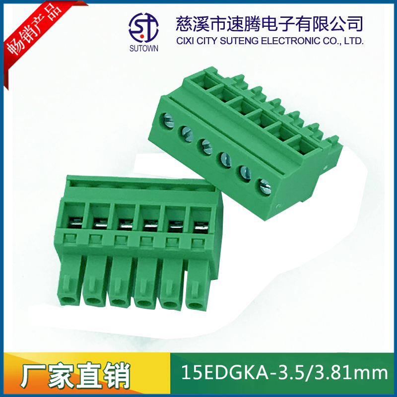 Material and Plating Spacing:3.5/3.81mm Plastic parts;PA66,UL94V-0 Cage:Brass,Tin plating Screw:M2,Steel,Zn Plating Contact material:Phosphor bronze,Nickel plating Electrical performance Rated voltage:300V Rated current:8A Ambient temperature:-40℃~+105℃ MAX Soldering:+250℃,5s Contact resistance:20mΩ Insulation resistance:5000MΩ/1000V Withstanding Voltage:AC1500V/1Min Wire diameter:28-16AWG 1.5mm2 Torque:0.4Nm Strip length:7-8mm