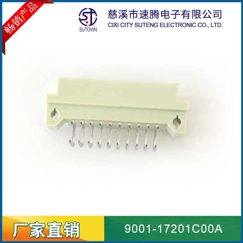 品名:歐式插座連接器型號:9001-17201C00A 規(guī)格:20pin屬性:直針公座 180°間距:2.54間距 備注:中間排1排