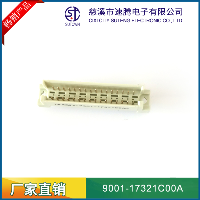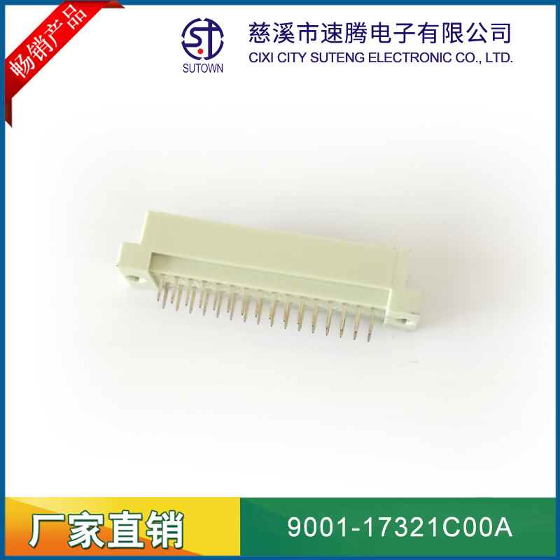 品名:歐式插座連接器型號(hào):9001-17321C00A 規(guī)格:32pin屬性:直針公座 180°間距:2.54間距 備注:中間排1排