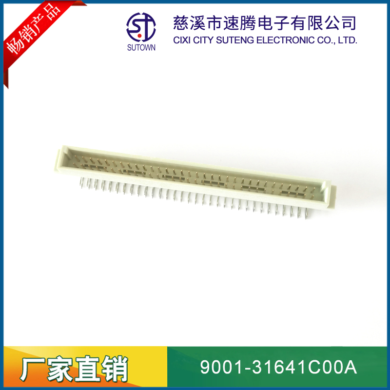 品名:歐式插座連接器型號:9001-31641C00A 規(guī)格:64pin屬性:直針公座 90°間距:2.54間距