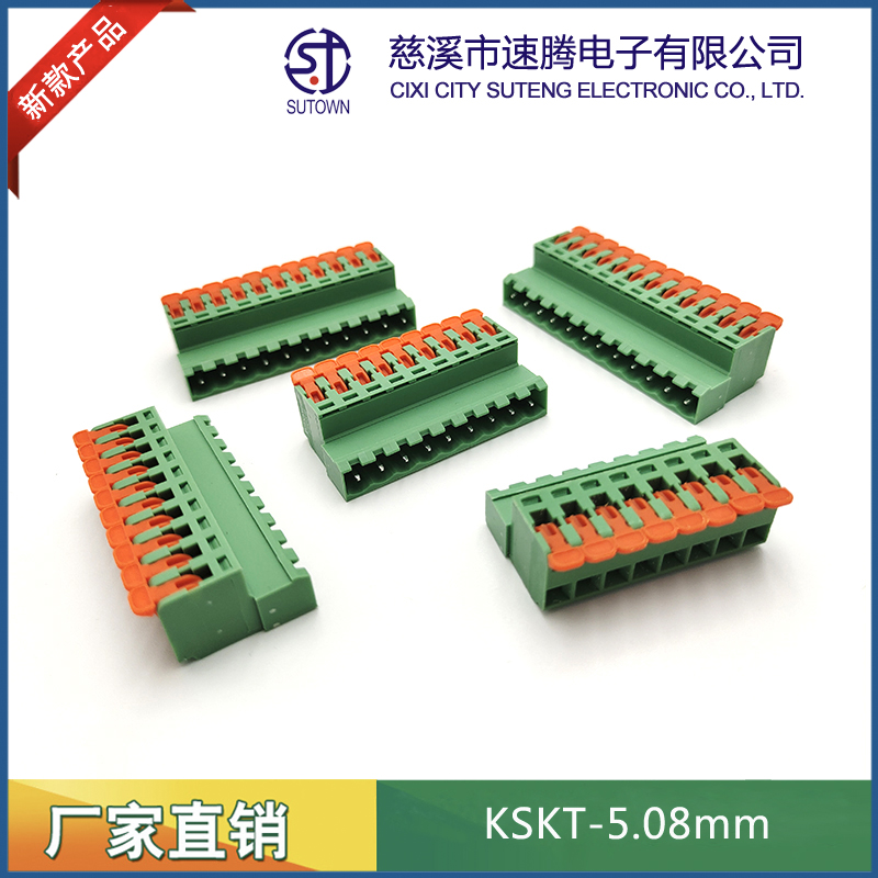 型號:KSKT-5.08mm間距:5.08mm極數:2-24P電氣性能 額定電壓:300V額定電流:15A使用線徑:24-12WG(2.5mm2)環境溫度:-40℃~+105℃瞬時溫度:+250℃,5s耐電壓:AC4000V/Min接觸電阻:20MΩ絕緣電阻:5000MΩ/1000V扭矩:0.4Nm剝線長度:7-8mm材質和電鍍 塑件:PA66,UL94V-0觸點材料:磷青銅,鍍鎳